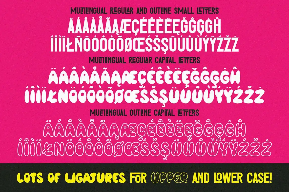 Crazy, playful, funny, casual, simple, urban, experimental & sans serif display font. Comes with multilingual support, 2 font versions & lot of ligatures - great for your new logo, monogram or branding project.