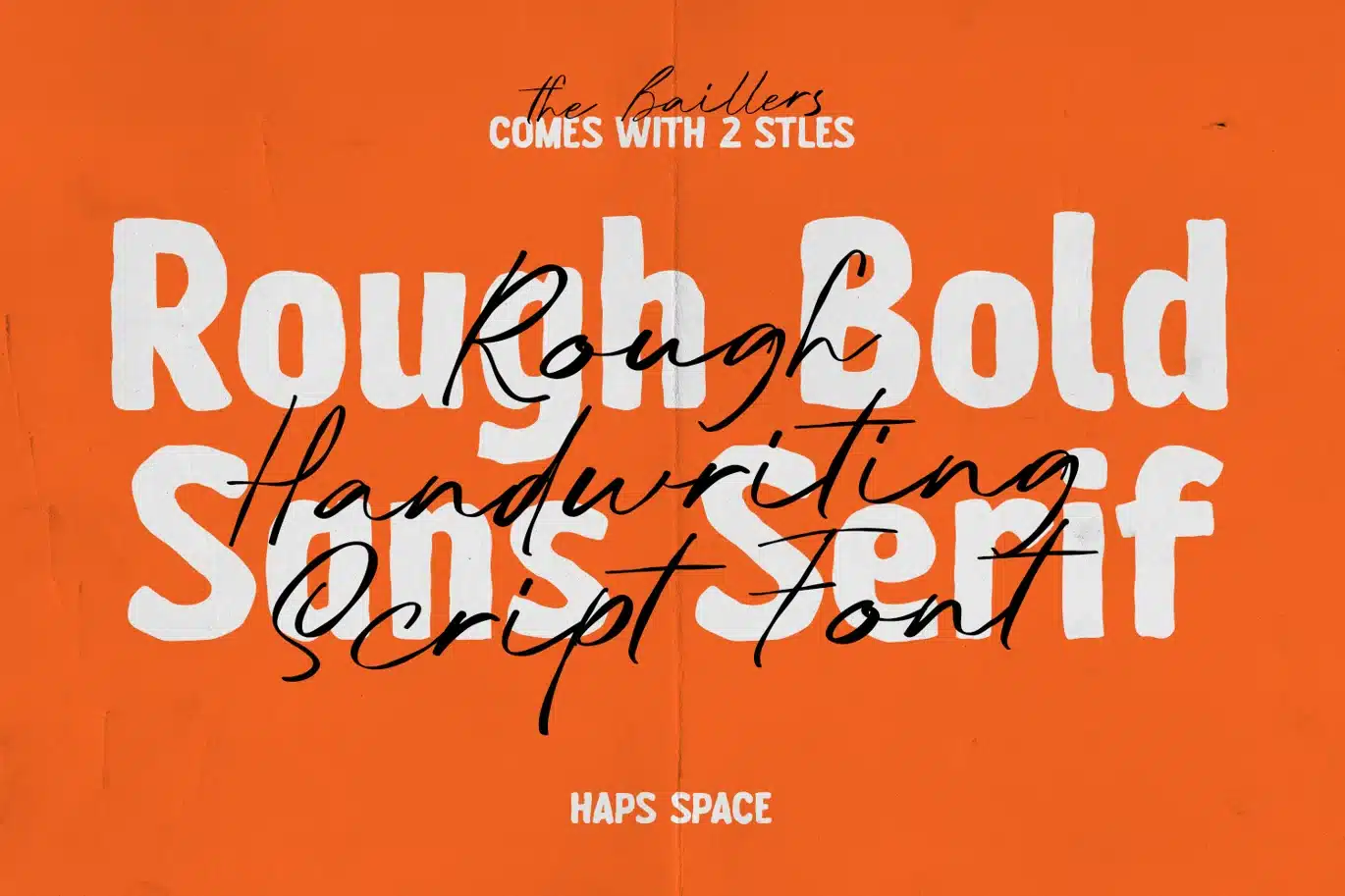 The Baillers Font Duo is a versatile and dynamic Rough Font Duo designed to give your projects an authentic, handcrafted edge. This package expertly pairs a bold, impactful Rough Sans-Serif with an elegant, free-flowing Signature Script, offering designers the ultimate tool for visual contrast and creative expression.