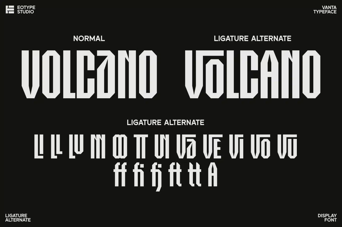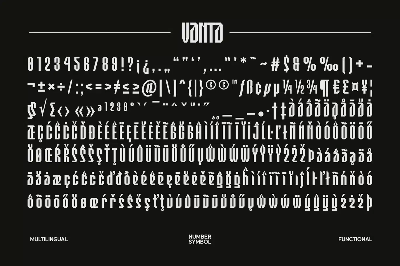 Perfect for headlines, branding, posters, logos, album covers, and editorial layouts, Vanta stands out with its aggressive yet elegant presence.