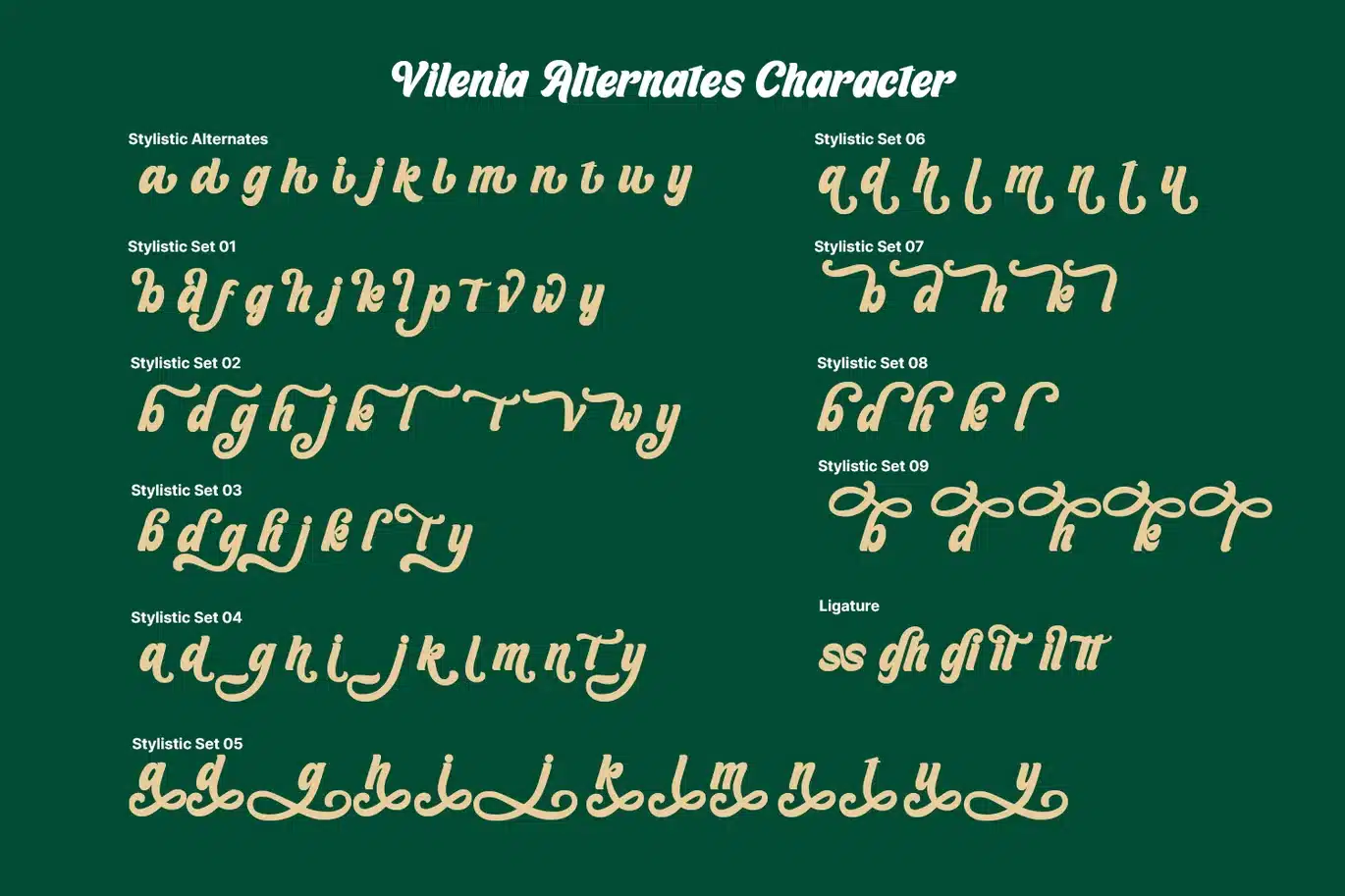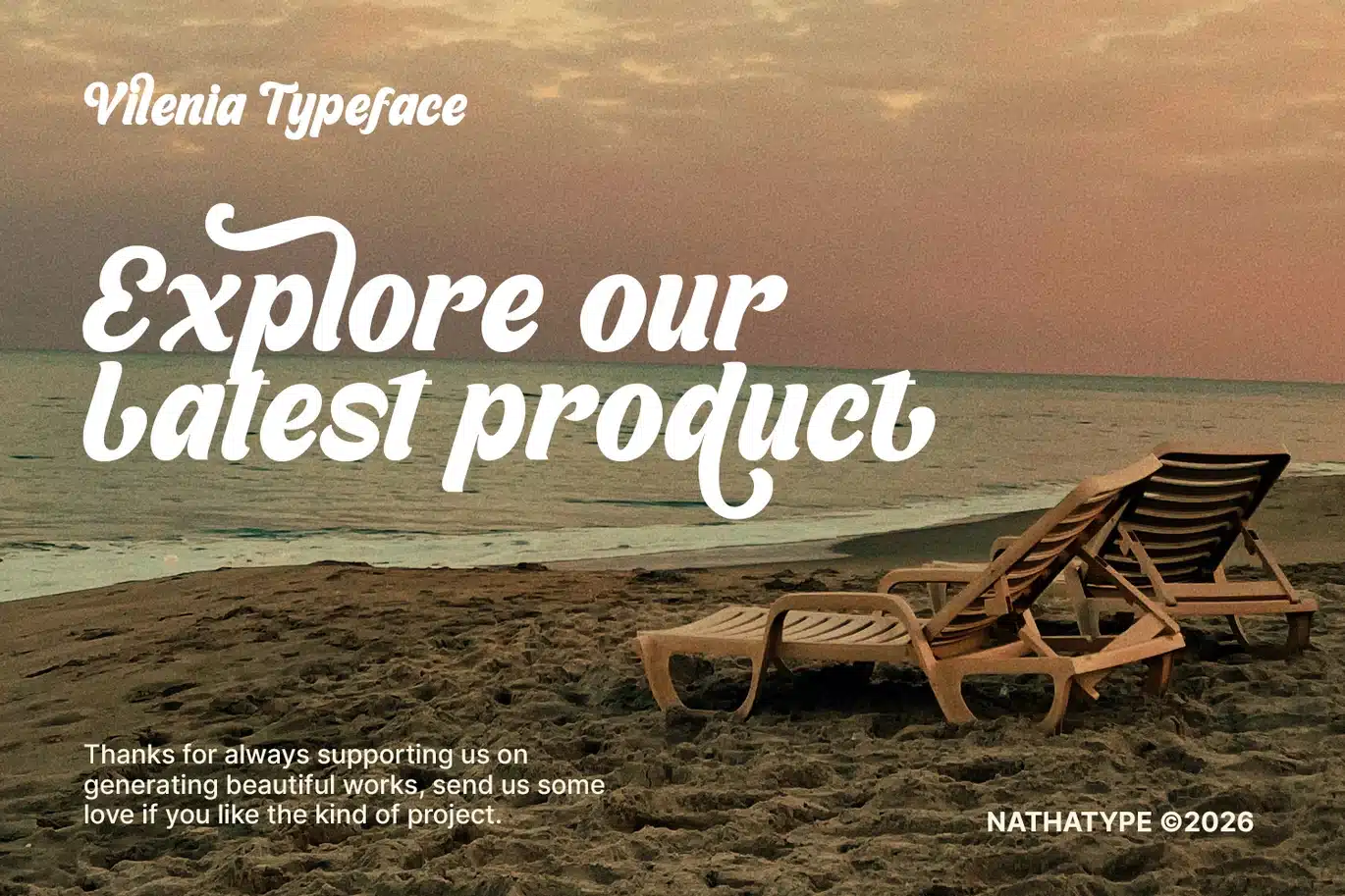 Vilenia is a beautifully crafted vintage script font. Built with a fairly thick weight, Vilenia captures the essence of classic hand-lettering while delivering a refined and expressive modern finish. This font is perfect for designers who want to create sophisticated, nostalgic designs with a strong visual presence. In addition, enjoy the features here.